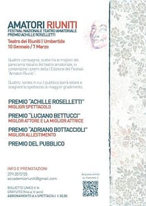 Quattro compagnie, scelte tra le migliori del panorama italiano del teatro amatoriale, si contendono i premi della I Edizione del Festival “Amatori Riuniti”.